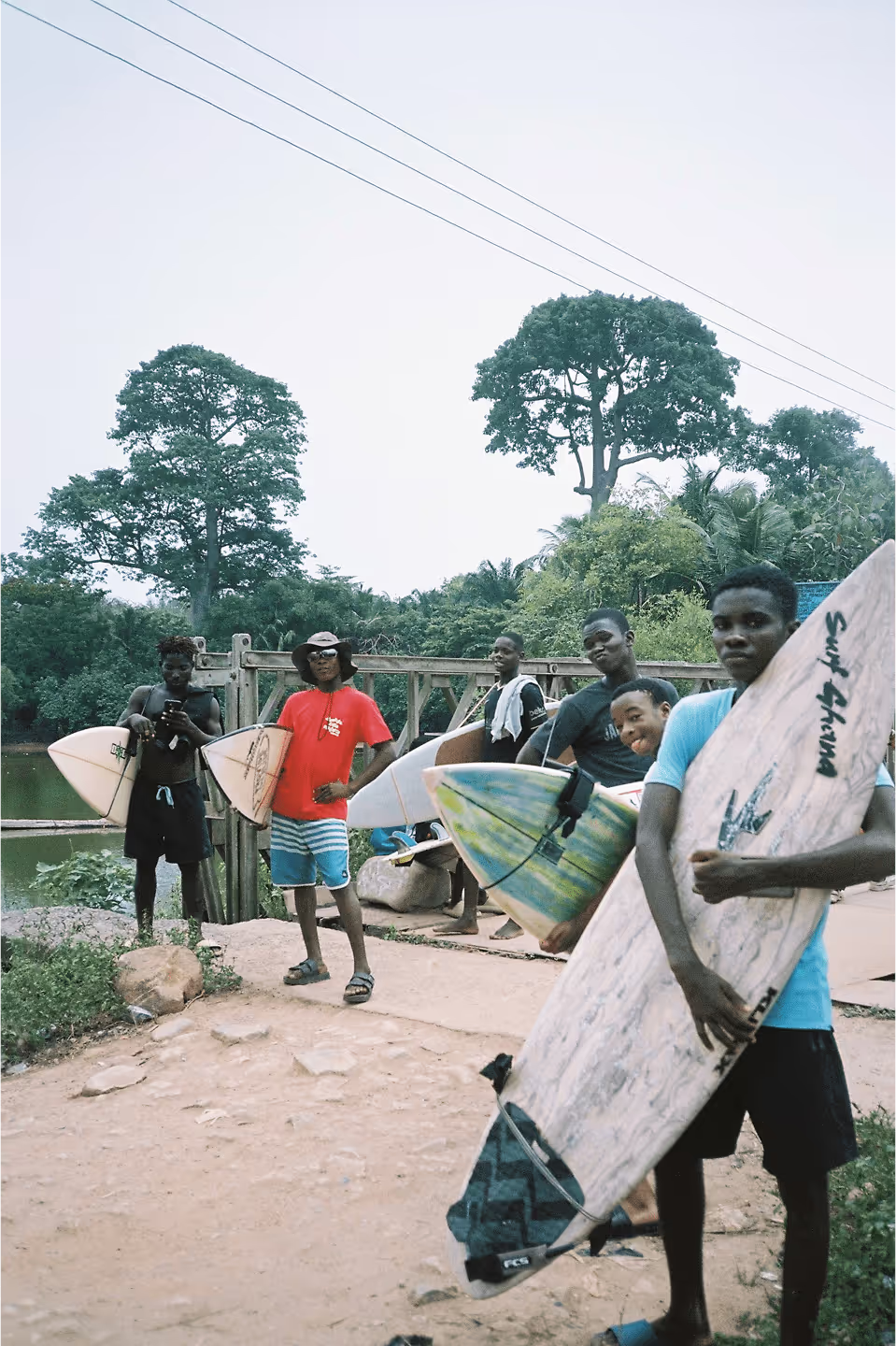 Collectif créé en 2018 par Sandy Alibo, Surf Ghana cherche à aider la jeunesse ghanéenne à s’émanciper à travers la pratique des arts et des sports glisse. Après avoir rassemblé et mobilisé des milliers de jeunes autour d’un immense projet de skatepark à Accra, l’accent est aujourd’hui mis sur le développement de la scène surf ghanéenne à Busua. L’idée : créer un surf club dédié à la jeunesse locale, mêlant coaching de haut niveau, accès à l’éducation et formations aux métiers du surf. Lancé en février 2024, le « Sankofa Surf Club » enchaîne les sessions de coachings, les formations, les compétitions et se hisse rapidement parmi les meilleurs clubs de surf locaux. Un dynamisme qui n’a pas manqué d'attirer l’attention de la Confédération de Surf Africaine, qui invite désormais le club à chacune de ses compétitions internationales.
