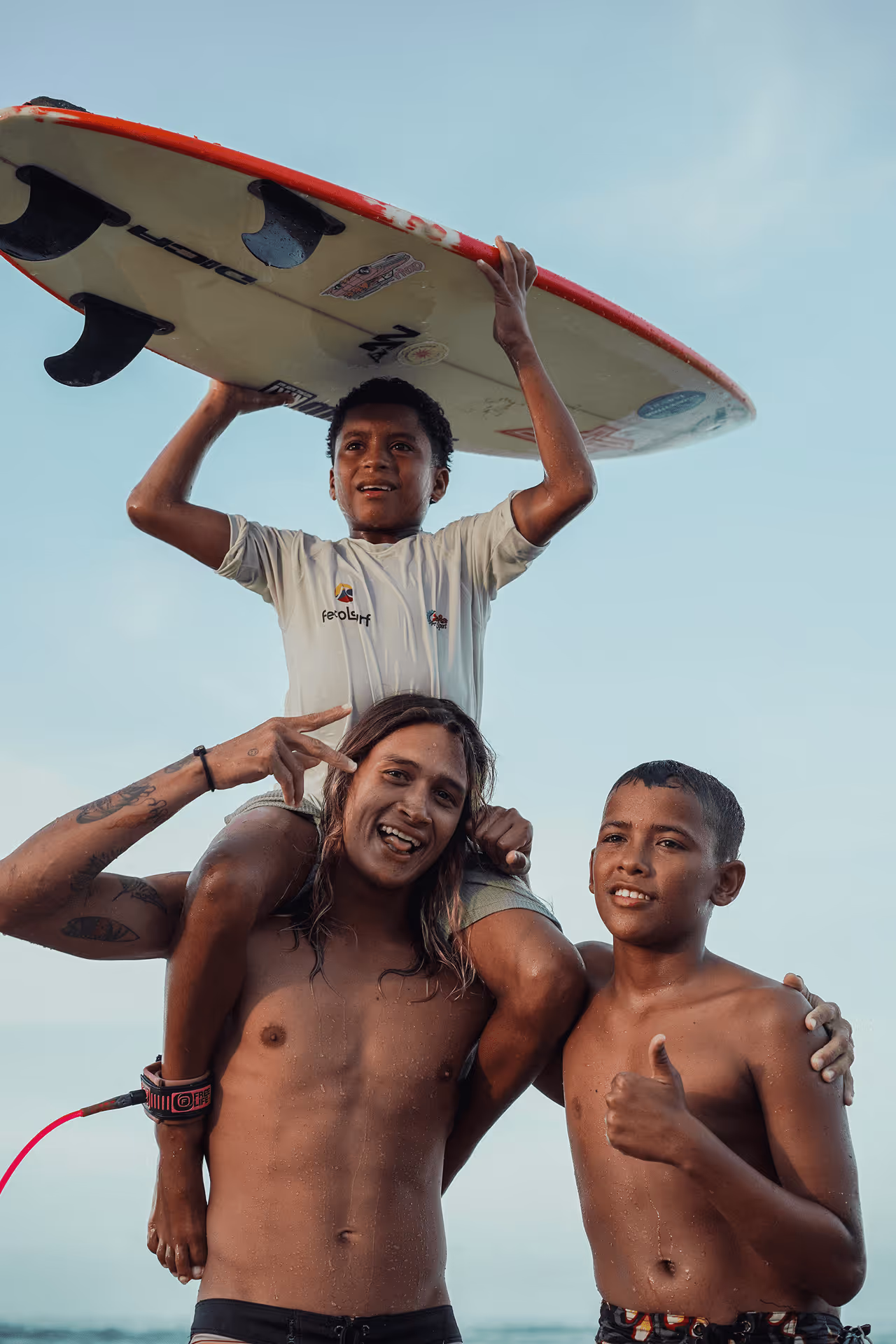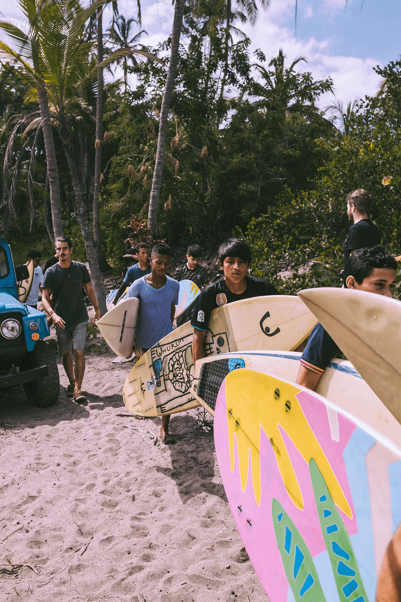 La Colombie regorge de spots de surf cachés entre jungle et océan, des spots qui ne profitent qu’aux locaux et aux touristes les plus curieux. Ces spots deviennent naturellement des lieux de rassemblement pour la jeunesse locale qui se prend à rêver de nouveaux métiers : prof de surf, photographe, réparateur de planches. Si le tourisme permet le développement de petites infrastructures, la dimension solidaire est souvent laissée de côté. Nous veillons d’un côté à accompagner les associations engagées pour la jeunesse locale, comme Costeño Social, qui propose des cours et formations (maths, anglais, yoga, dessin, échecs et des cours de surf..) aux jeunes des villages autour de Costeño Beach. De l’autre, nous aidons les clubs à sortir de terre en leur fournissant du matériel de qualité tout en distillant un esprit de développement durable et solidaire. Nous organisons également des évènements afin de favoriser l’émergence de talents locaux.